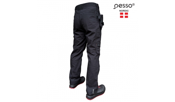 Kelnės pasiūtos iš ypač stipraus poliesterio/medvilnės audinio ilgaamžiškumui užtikrinti. 4-Way Stretch tamprus audinys, garantuojantis judesių laisvę, komfortą ir oro cirkuliaciją. Naujausių technologijų audiniai