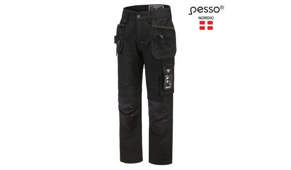 Funkcionalios kišenės: 4 priekinės kišenės, nugaroje dvi praplatintos kišenės, klešnių šoninės kišenės. Kišenė ruletei, plaktukui, mobiliam telefonui.