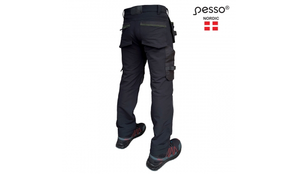 Funkcionalios kišenės: 4 priekinės kišenės, nugaroje dvi praplatintos kišenės, klešnių šoninės kišenės. Kišenė ruletei, plaktukui, mobiliam telefonui.
