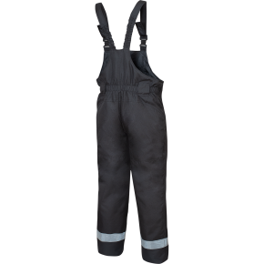 Itin tvirtos CANVAS medžiagos neperpučiamas žieminis darbo puskombinezonis puikiai apsaugo nuo šalčio. PU impregnavimas atstumia vandenį ir drėgmę. Per krūtinę užsegamas ilgu dvipusiu užtrauktuku. Klešnių apačioje apsauga nuo sniego. Petnešų ilgis reguliuojamas, pritaikant puskombinezonį patogesniam naudojimui. Šviesą atspindinčios juostos ant klešnių. Kilpos diržui juosmens srityje. Pastiprinti keliai, galimybė įkišti antkelius. Dvi kišenės juosmens srityje.