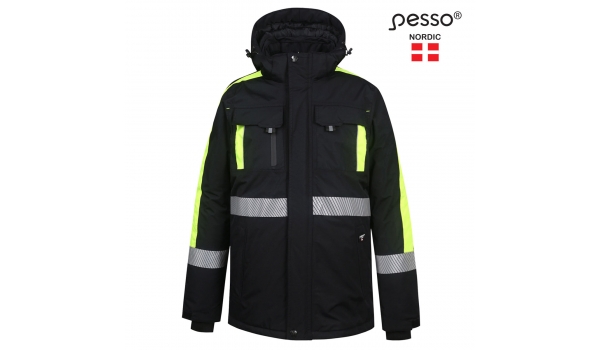 Kita: striukės apačia vidinėje dalyje reguoliuojama raišteliais Tamsiai pilkos refleksinės juostelės rūbo siūlėse nekrenta į akį dienos metu, tačiau puikiai atspindi šviesą tamsiu paros metu.